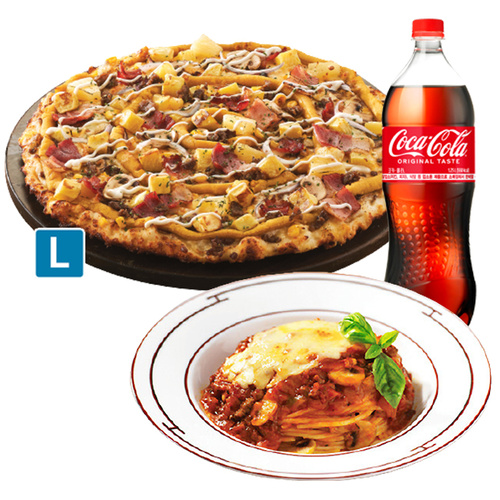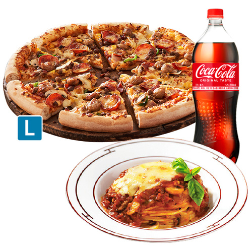 [도미노피자] (오리지널) K-Rib&치즈 L + 뉴치즈 볼로네즈 스파게티 + 콜라 1.25L