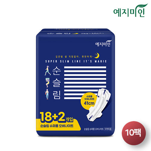 [예지미인] 순슬림 슈퍼롱오버나이트 18+2P x 10팩 / 생리대